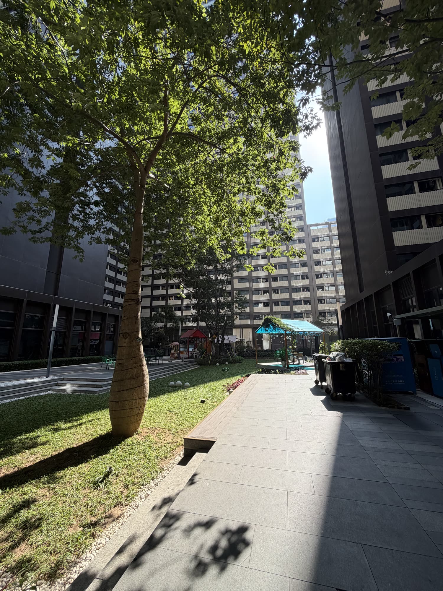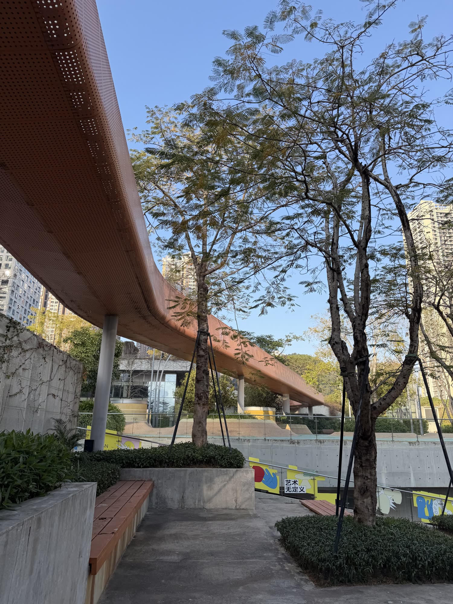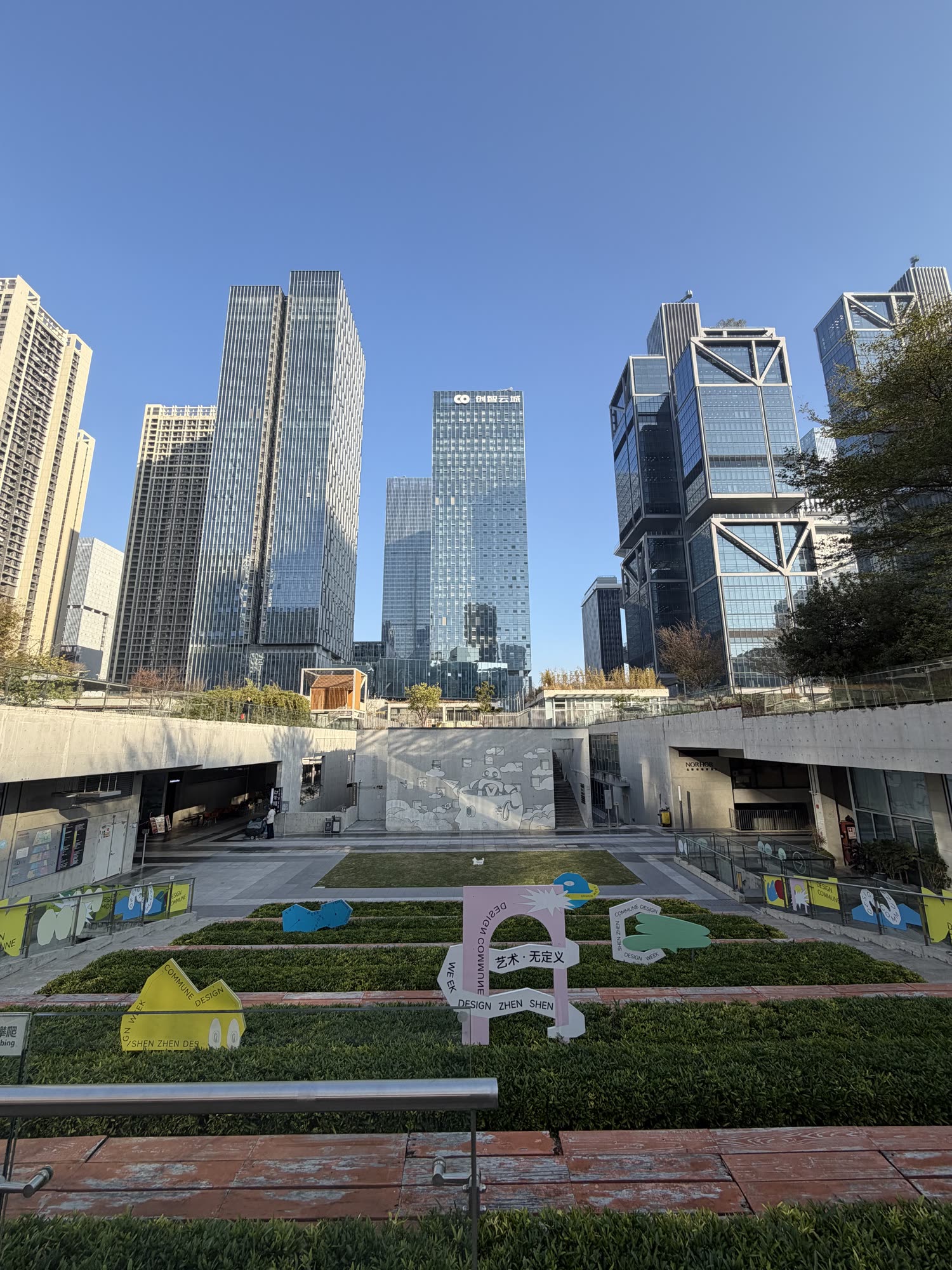 Above: more from the design commune park: subterranean bbq’s, topside cafes, whatever this little courtyard nook is, and a little sports complex. All of this takes up about three city blocks in Nanshan with monumental-sized towers on the north and south sides, including the DJI Headquarters (above, right).
