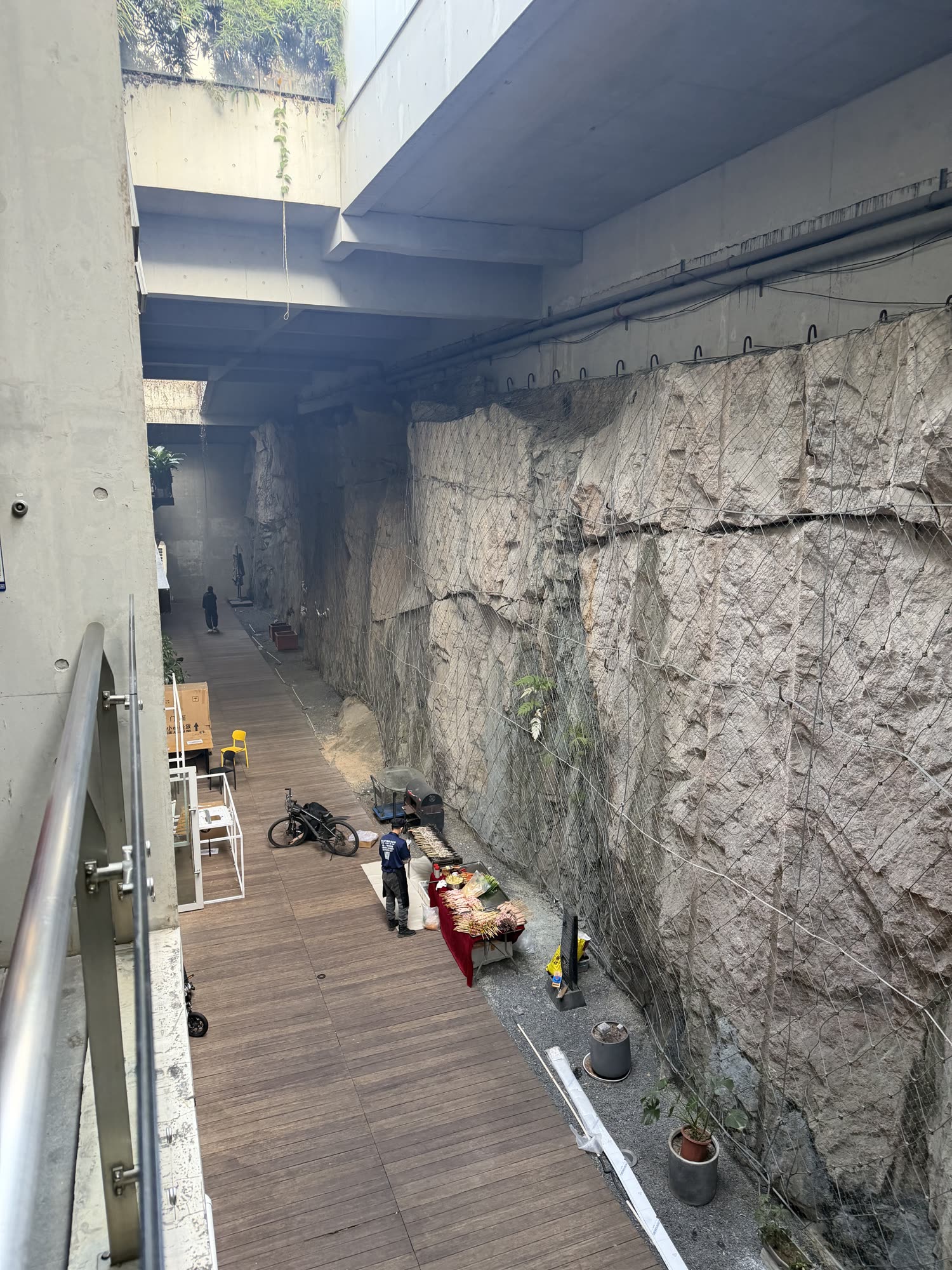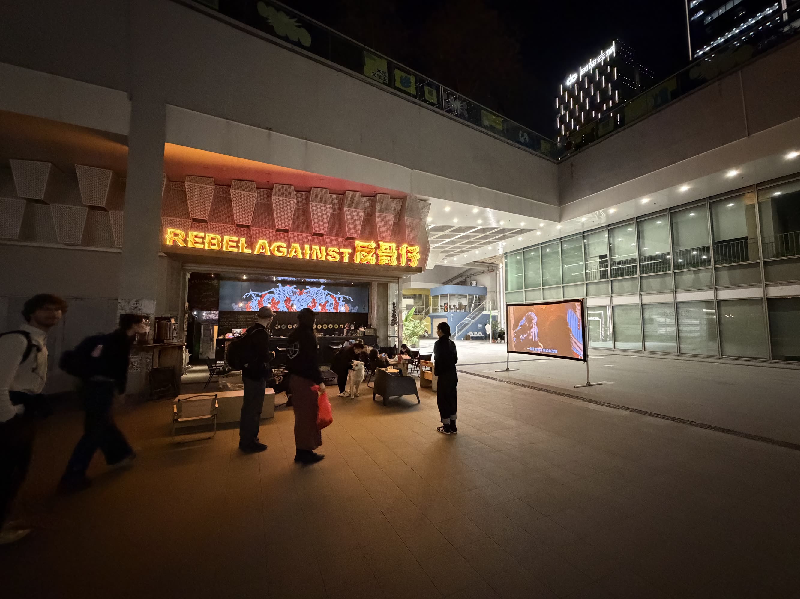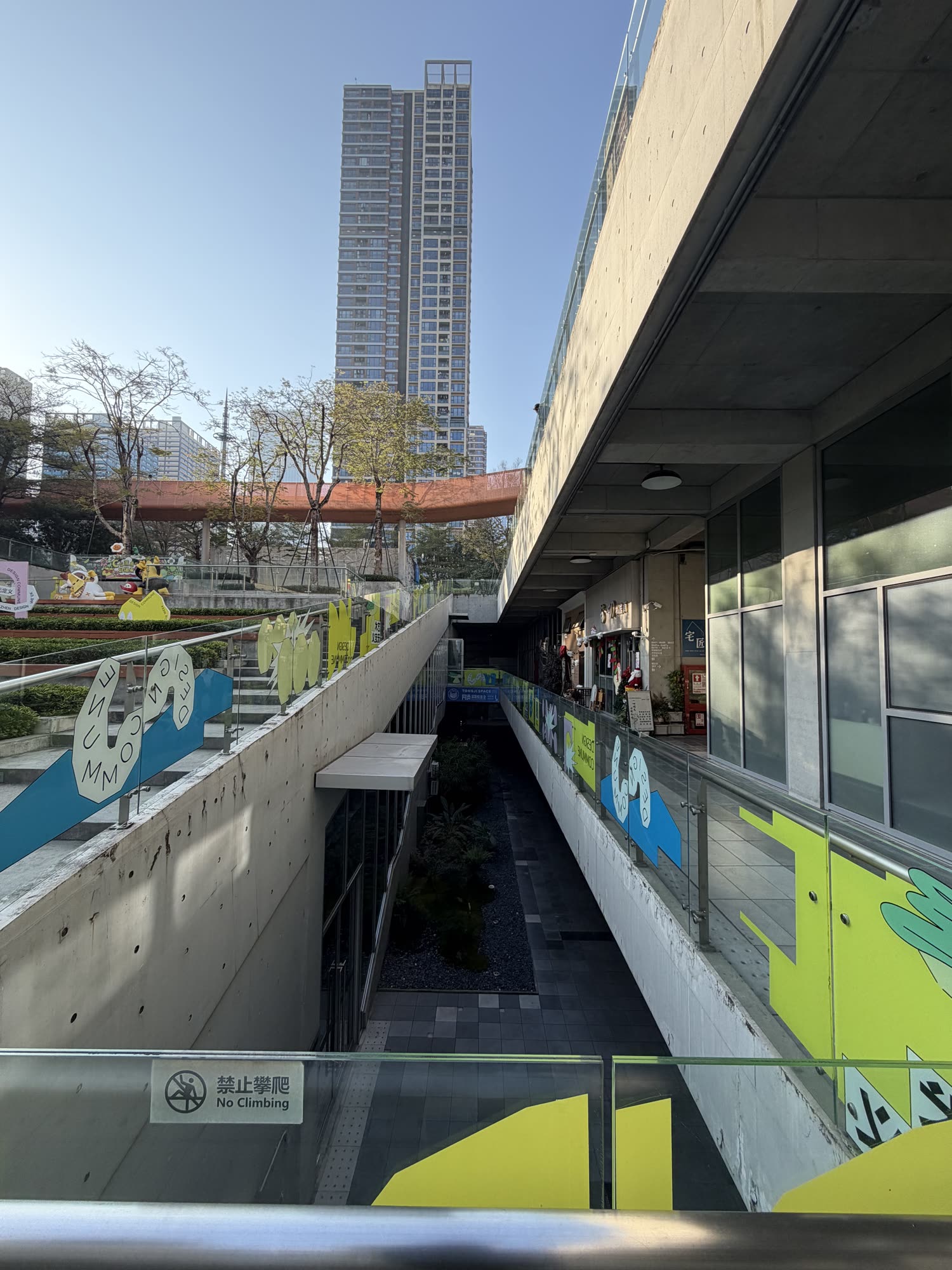 Photos above: descending into our base camp at Chaihuo in a so-called design commune; a kind of brutalist sunken park / mixed use space. There is an amount of three-dimensionality to these cities that made my inner architect excited. Also a sense of planning: Vanke is a monster developer in China, they made this with the explicit purpose of building lots of small (and hip) little studios / offices for creative and “innovative” firms to start up in. There are cafes and bars and design firms and lunch spots and design stores all setup in here. Somehow it is a park as well, on the top/sunny side are children playing and weird little designer dogs out with their people, and a set of basketball courts.