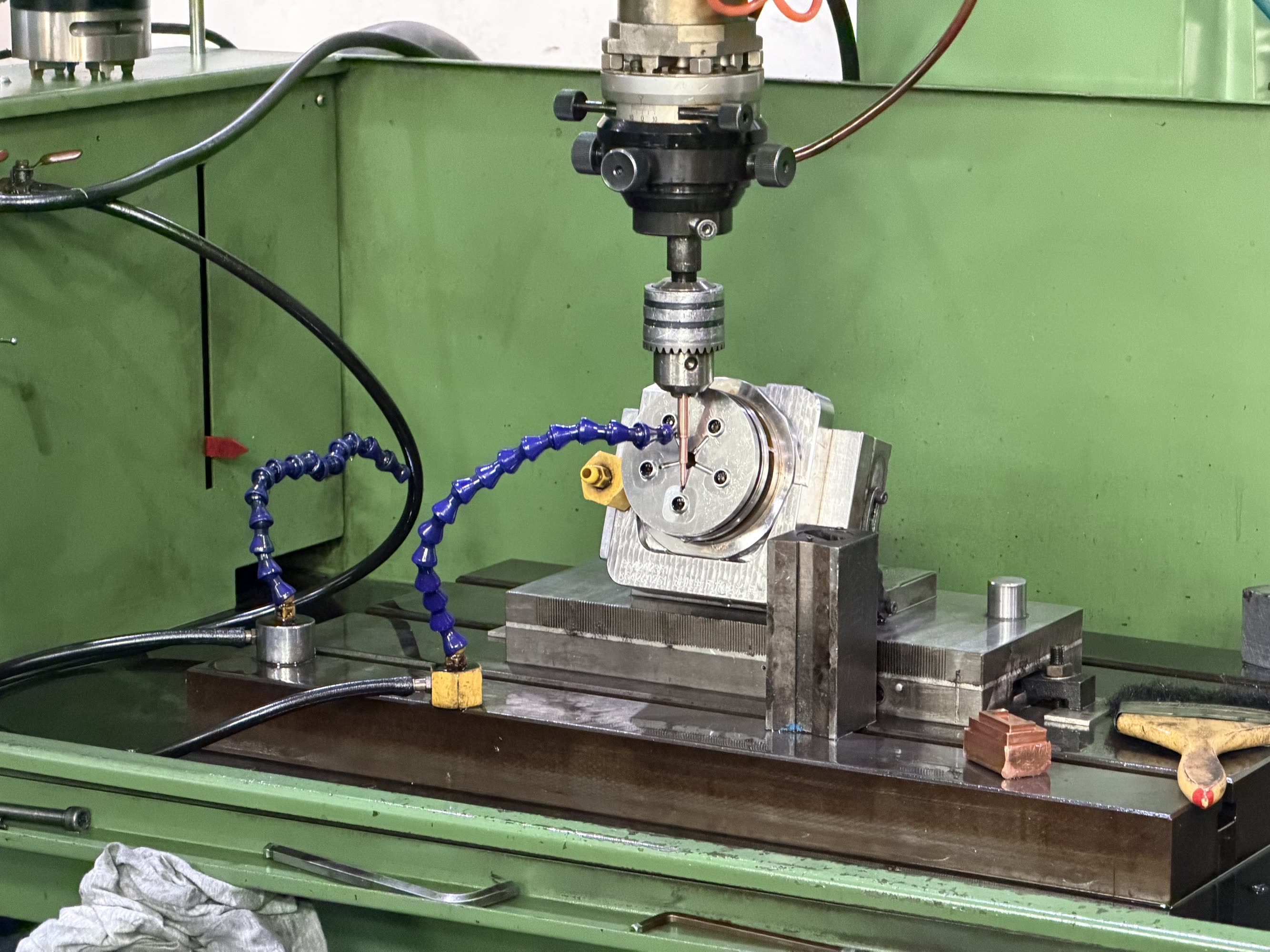 Sink EDM: CNC to make tooling, and an old school edge finder.