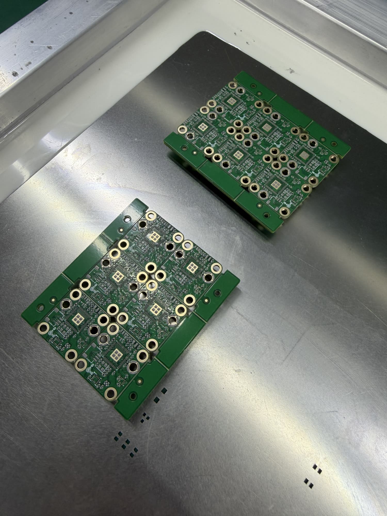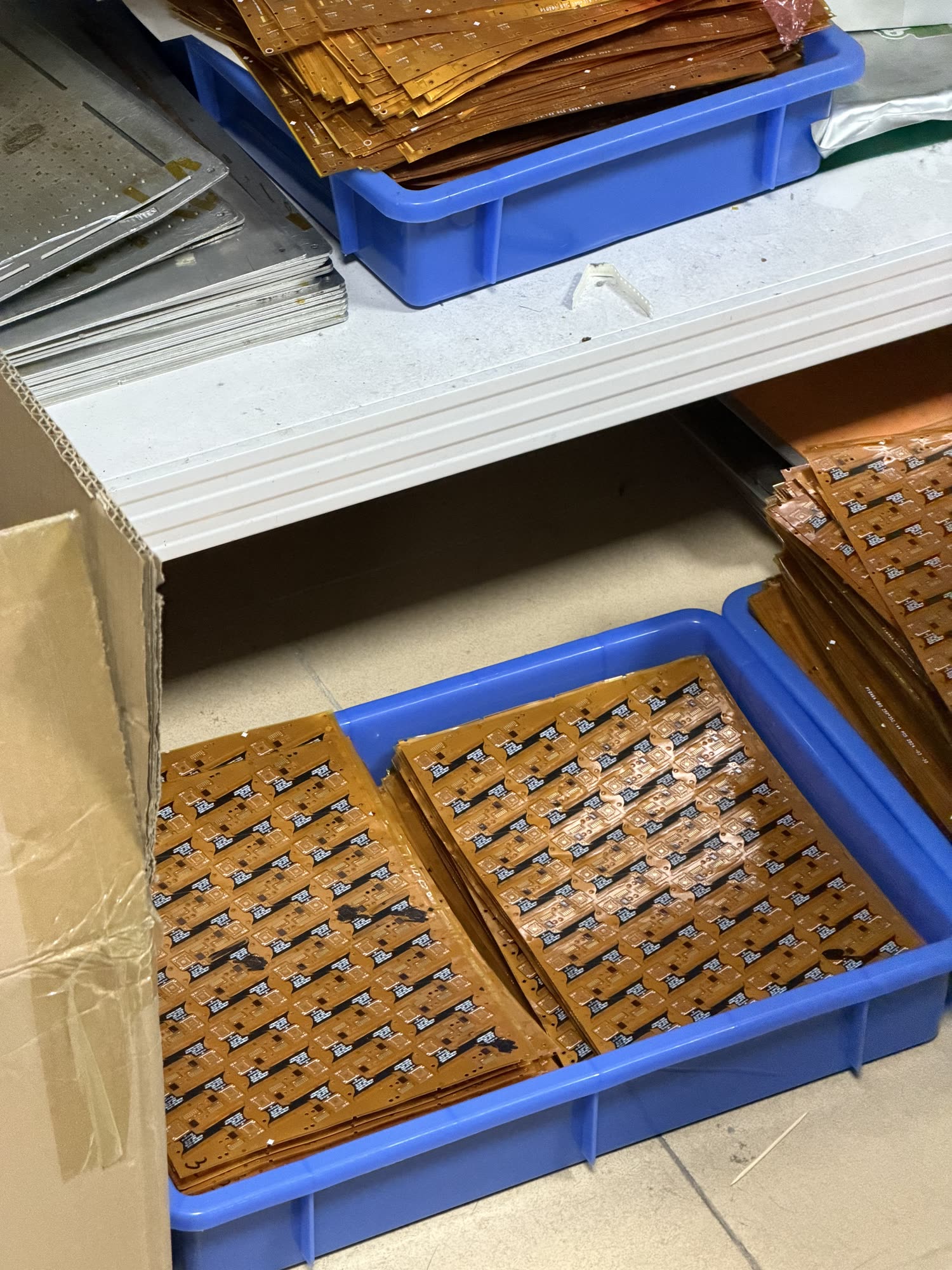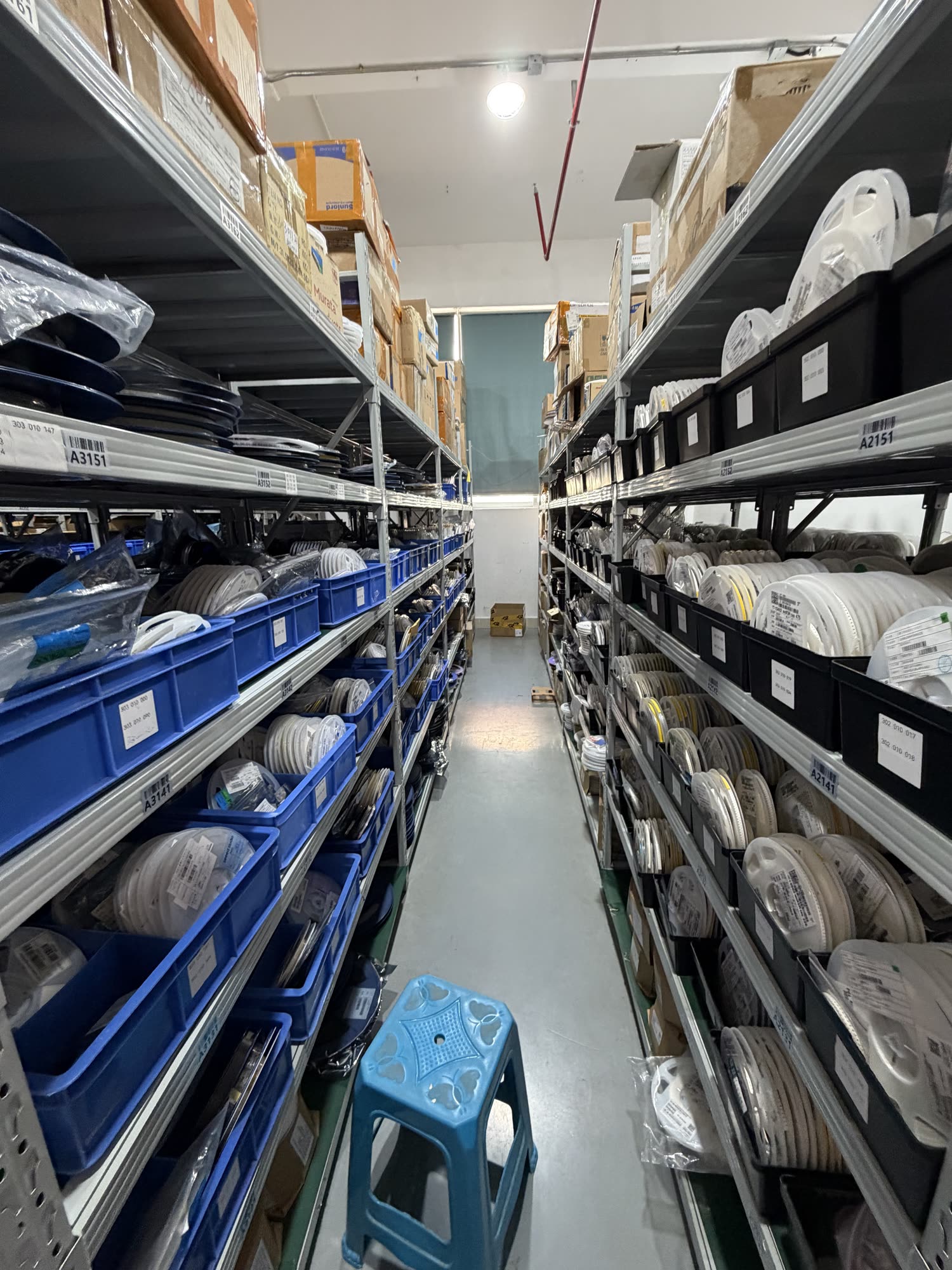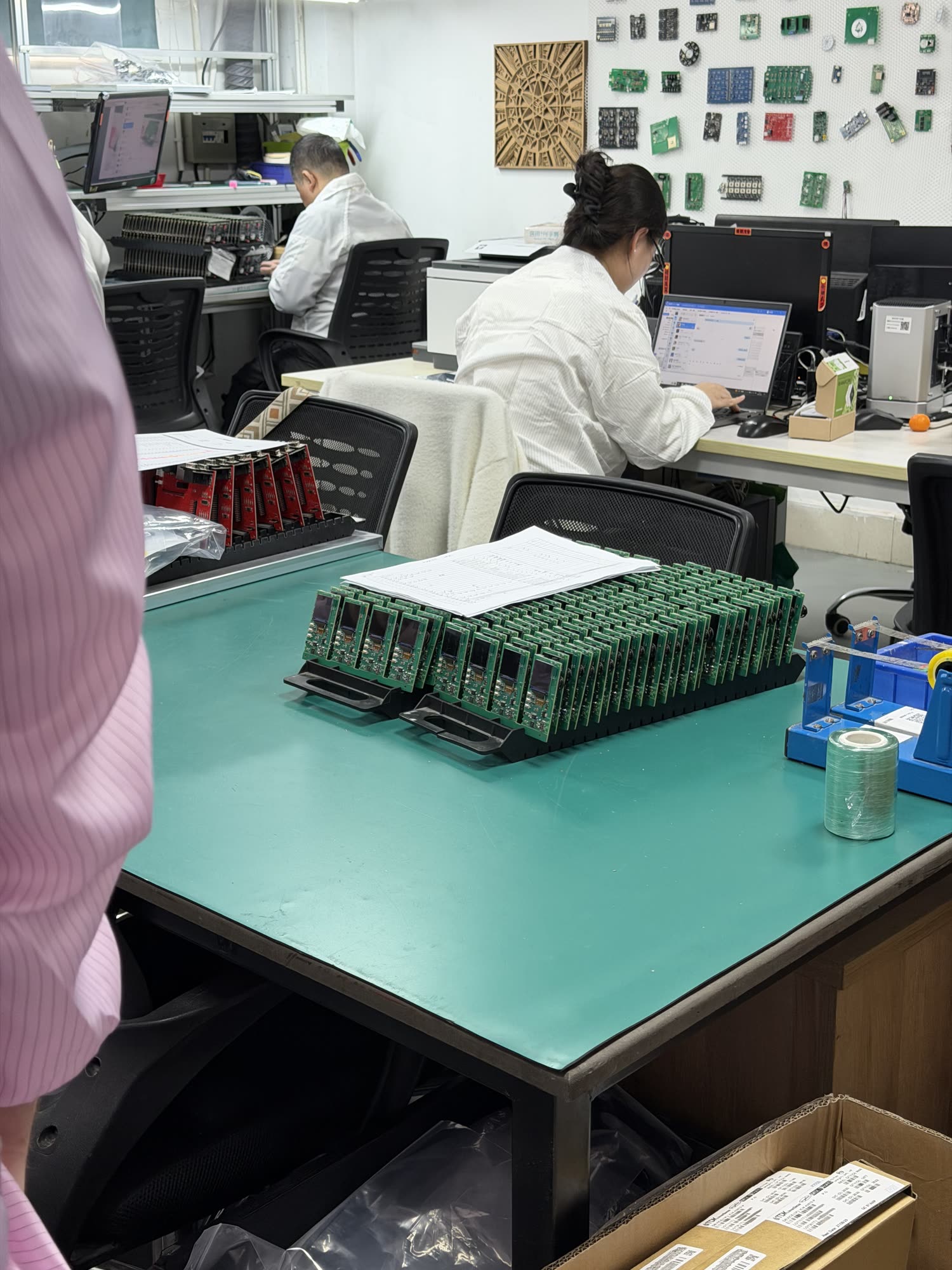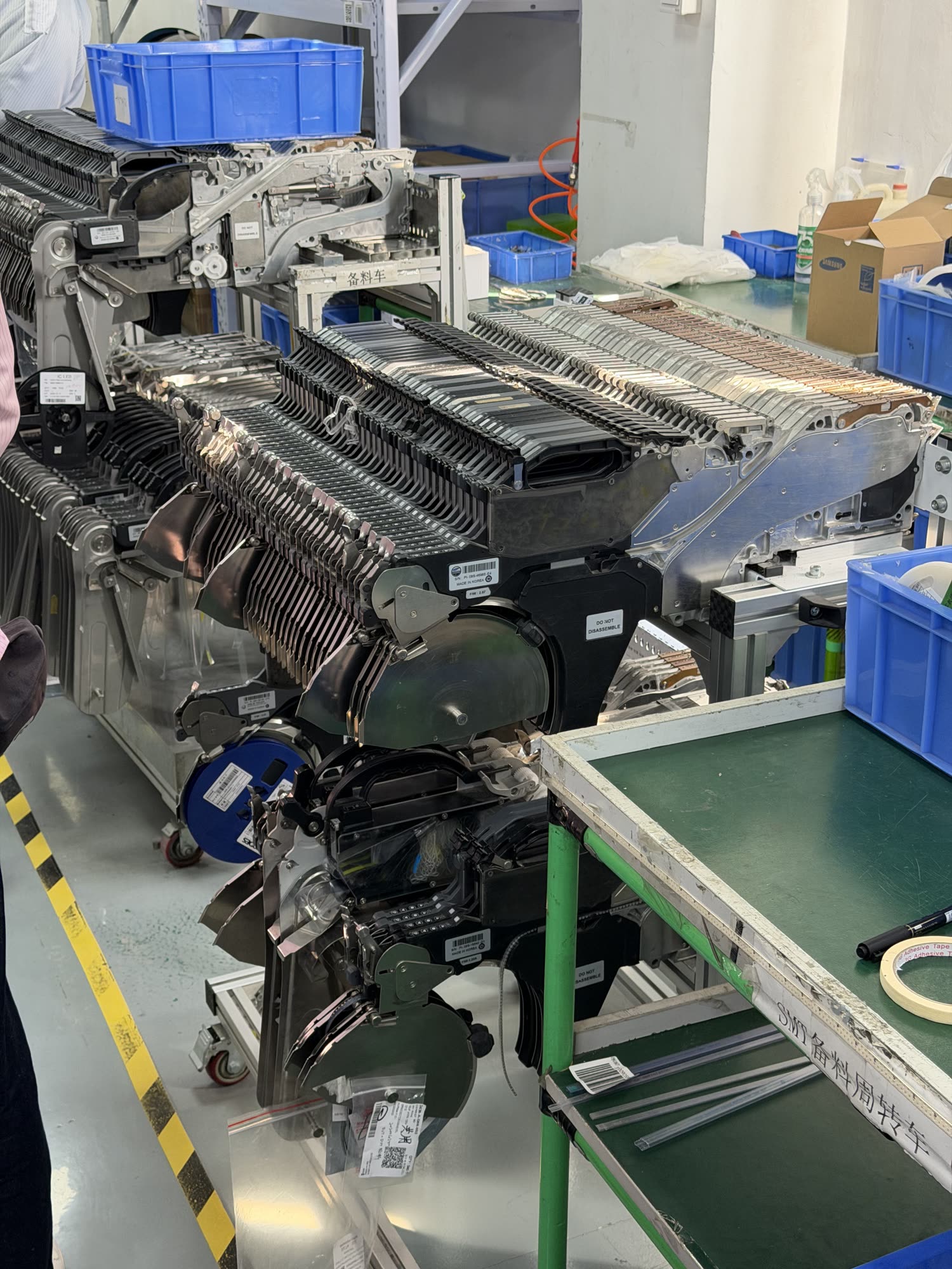 Ahead of the SMT line is a parts sorting room / kind of clearing house which is properly chaotic at first glance but for which they have a fairly sophisticated stockroom tracking system. These are the boring parts.