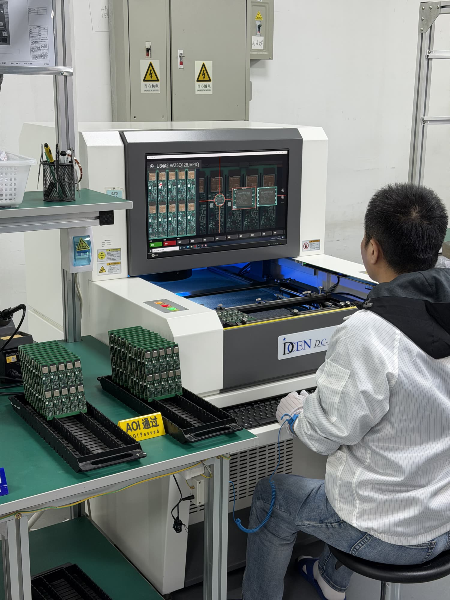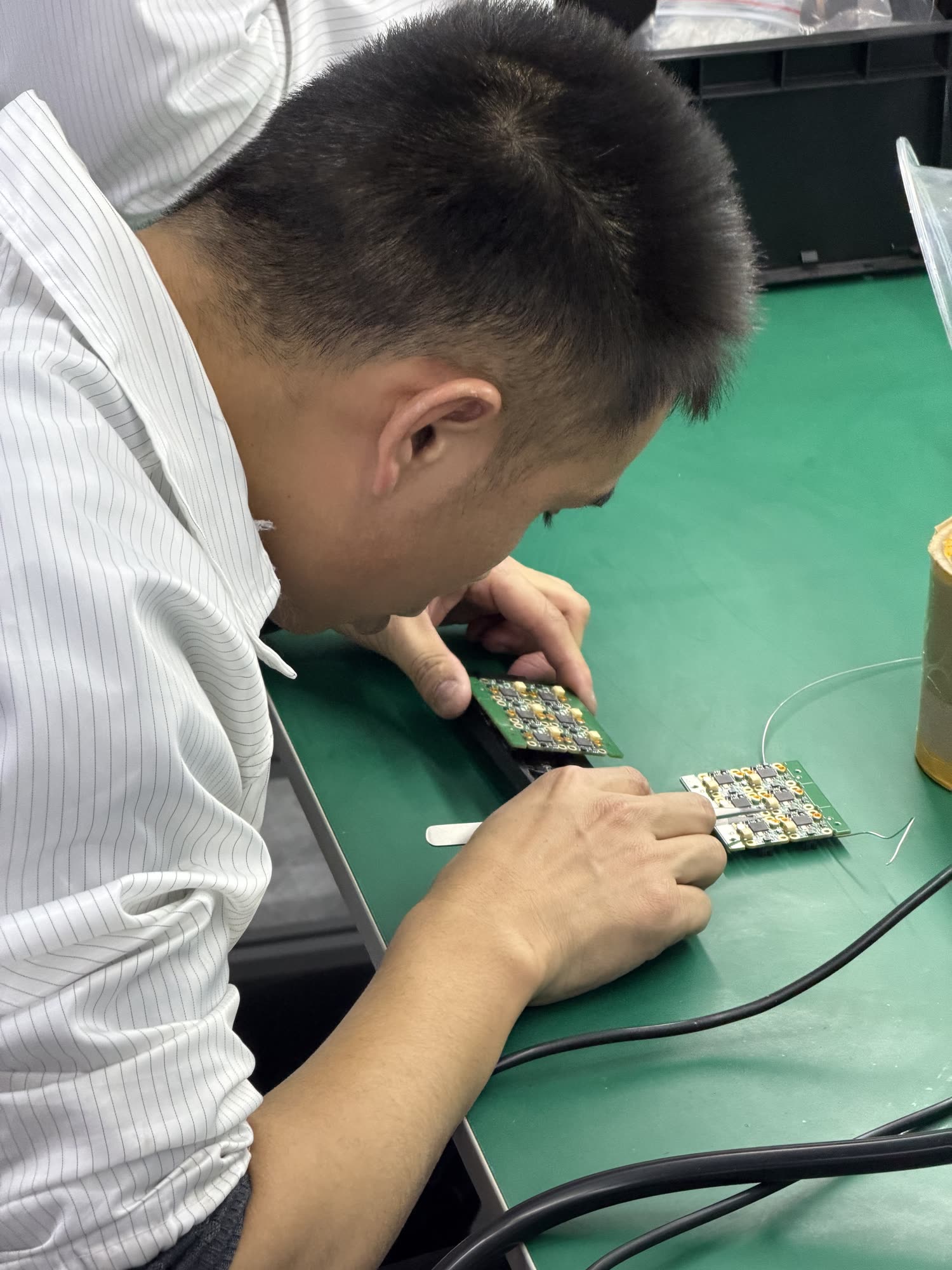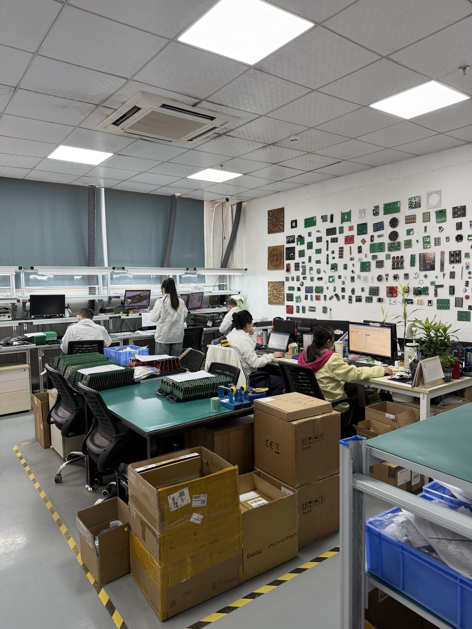 Flex PCB Assembly line: automation + manual rework.