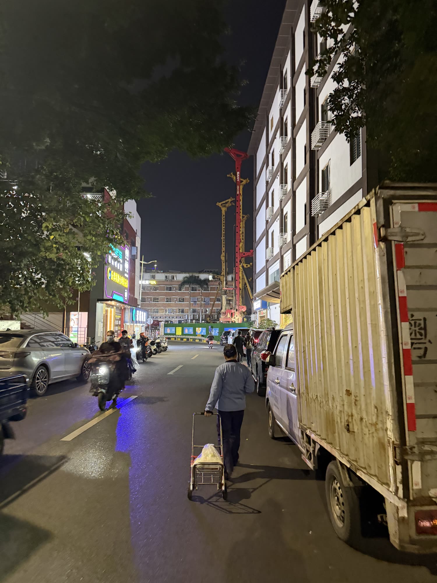 The hotel I’m in is a subset of a larger building complex (called Boyu Nanshan Yuncheng Flagship Store per the maps translation). The complex is a little city all on its own: there are families and youths mixed into what must be thousands of apartments, the lower floors are filled with small businesses, cafes, restaurants, stores etc. The elevator ride is long enough that it’s worth considering when you estimate how long it’s going to take to get anywhere. Probably I am making myself sound like a country bumpkin, but I guess that’s just the sensation that is new to me. Normally I go places and I feel like I can kind of comprehend it: the scale makes sense and I am not really in awe of anything. This feels different, things are big and there is a real sense that the thing is all working together.