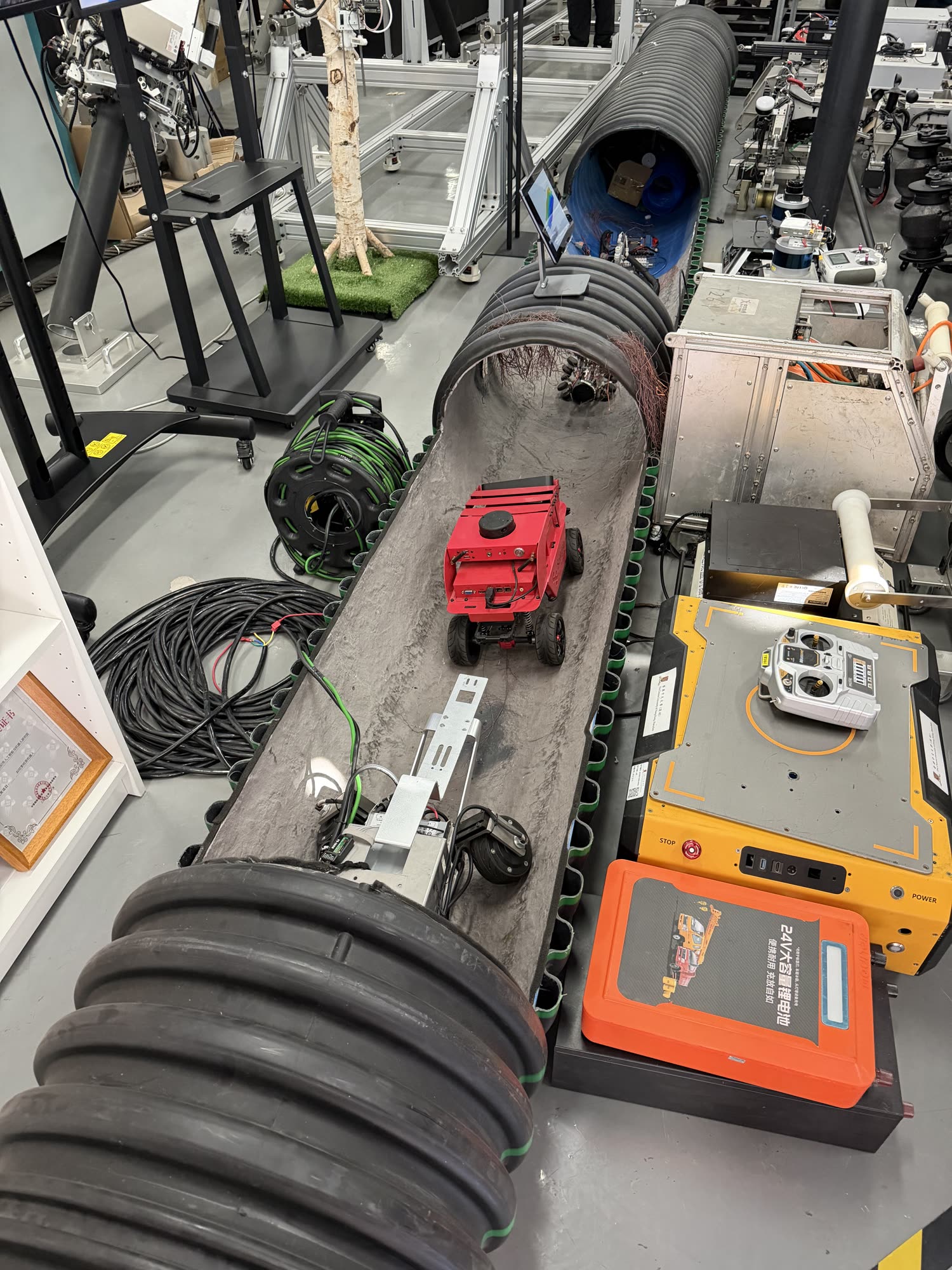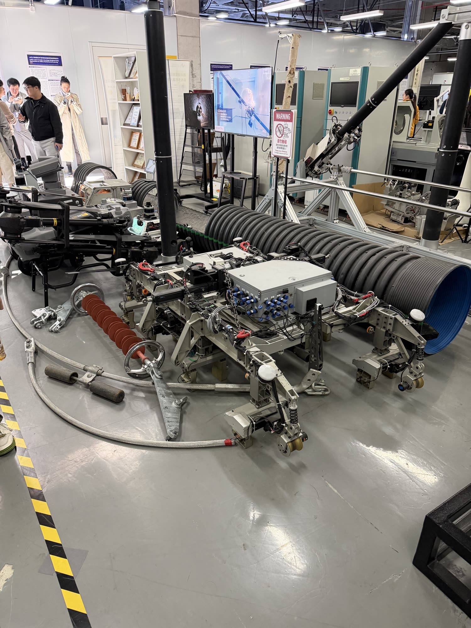 We visited also AIRS, the Shenzhen Institute of Artificial Intelligence and Robotics for Society. Here were numerous robots designed to serve infrastructure projects: basically a suite of inspection and maintenance robots. Two notes on this: (1) it is very forwards-looking and practical of this institute to work direclty on such obviously forthcoming issues and (2) that the funding model is not confounded by the requirement for academic novelty, they are simply making functional things that directly serve a purpose. The innovation happens as a byproduct of doing real things and (from the few controls posters I saw) is driven by the desire to i.e. build better tools and more generalizeable systems for the next practical thing. This in counterpoint to what feels like a common practice where “innovation” is the primary goal and then “applications” are invented to suit demonstration of the innovation. I think that a lot of research groups get lost in trap where novel systems, architectures, etc are pursued for the purposes of publishing. Grounding them to real applications is furiously difficult because we have to also make whatever new invention work and if it’s robotics etc, work well and reliably. When the grad students who are working in your lab don’t have any grounded experience making i.e. robotic systems, it is even more difficult to ground whatever novel invention in real applications.