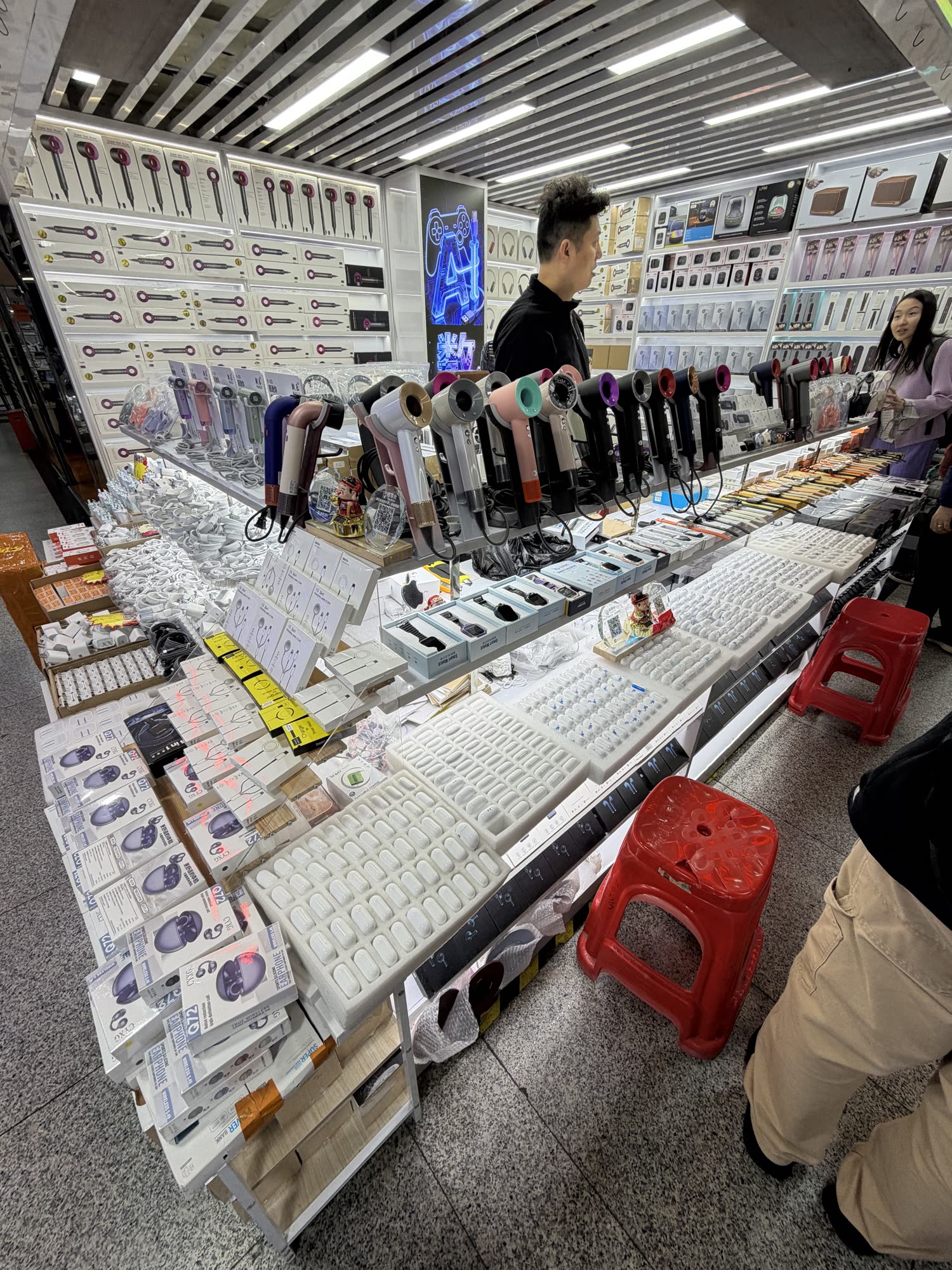 From what I gather, HQB has evolved from a proper electronics-components market (which would have made more sense in the proto-internet era of its origin) to what it feels like now, which is half components market and half shopping mall for knockoffs of Shenzhen-manufactured goods. I guess I was hoping to find the inside of McMaster Carr, Digikey and AutomationDirect, but it was more like DigiKey + BestBuy + … You know what, it’s not like anything else, it is HQB.