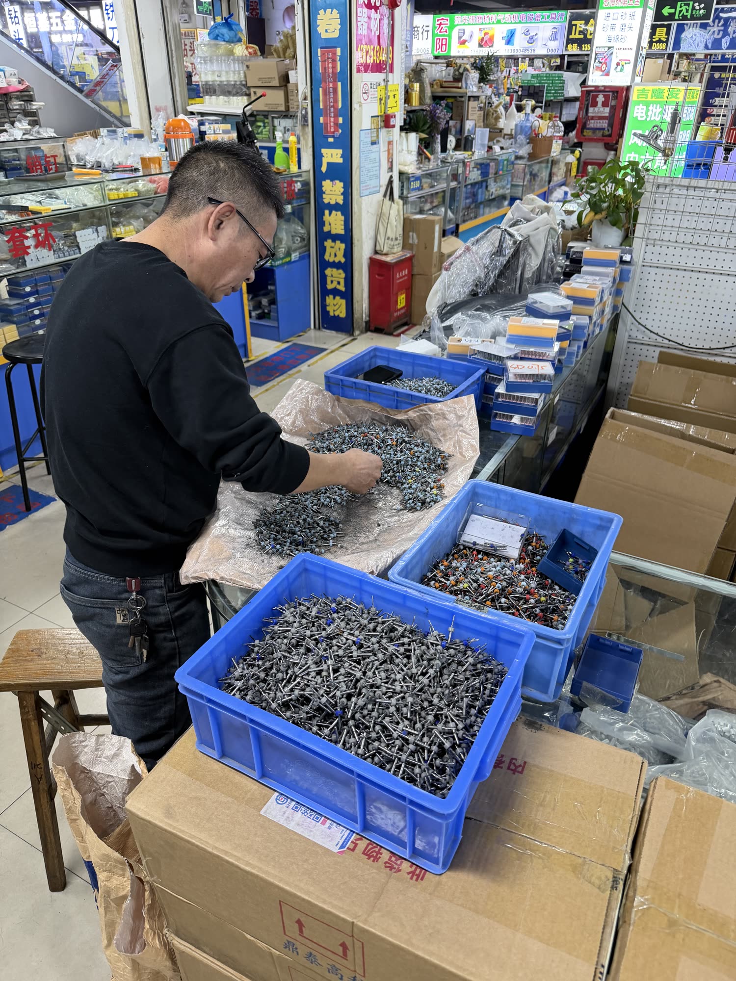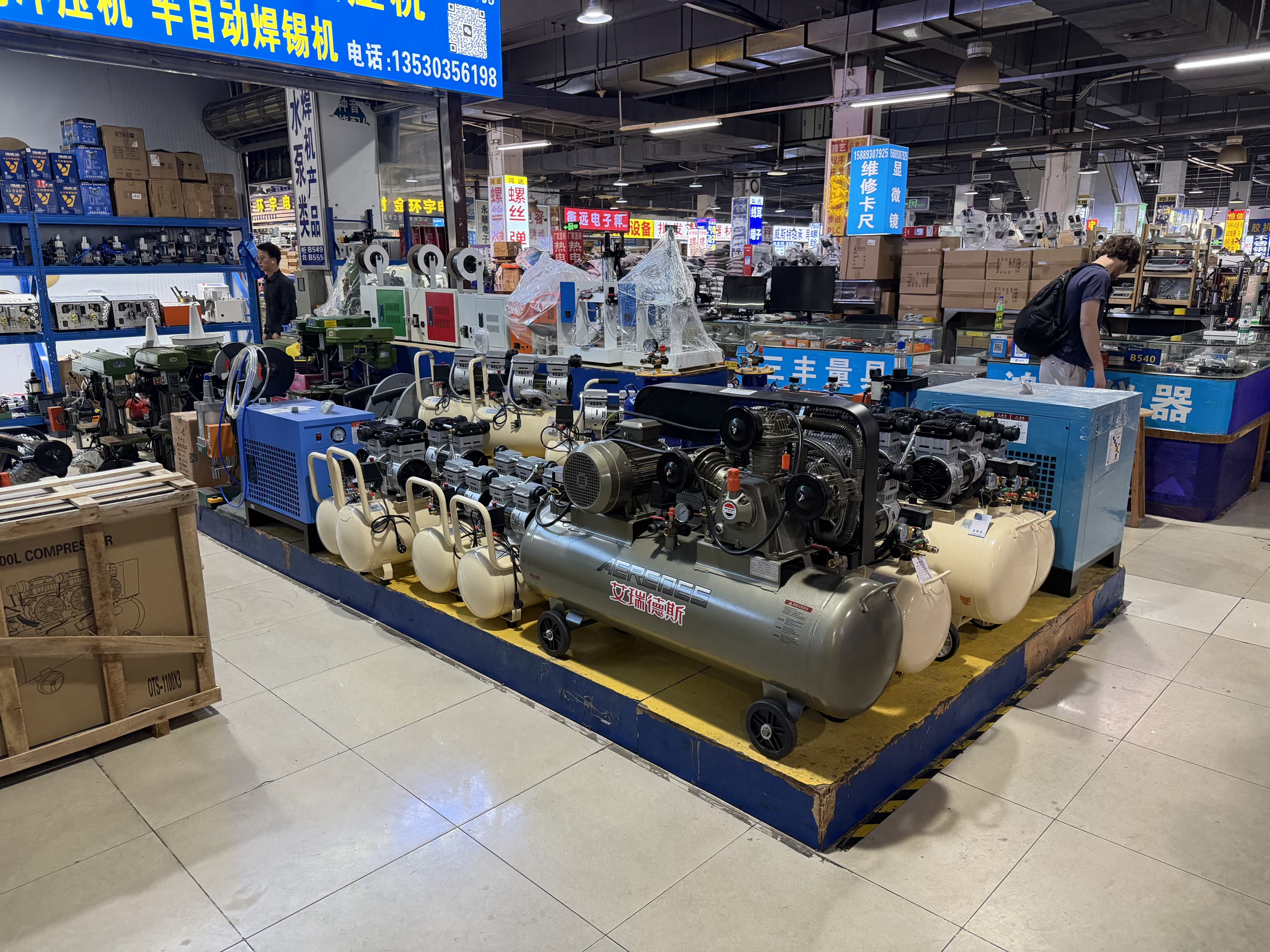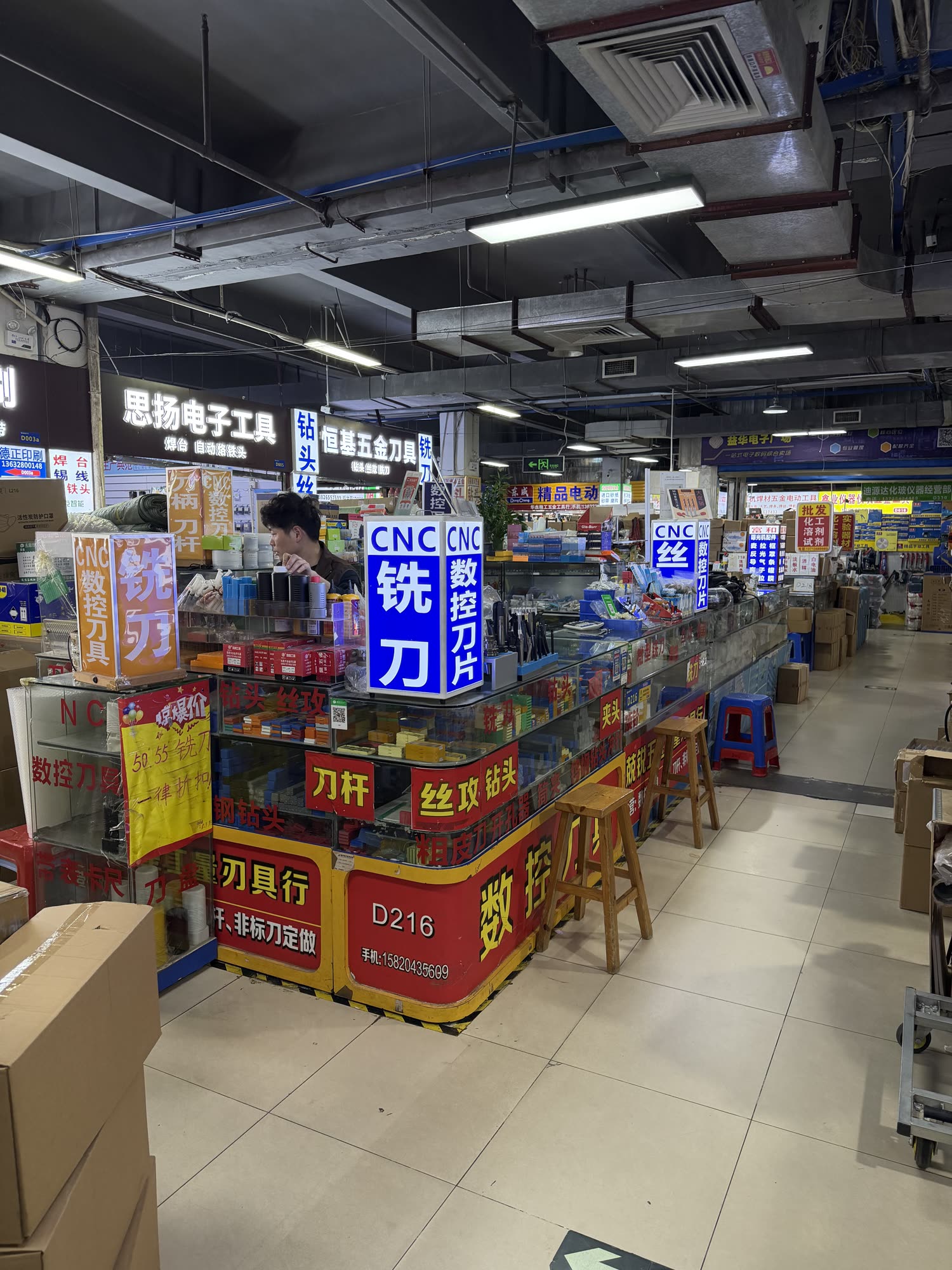 I am a machines fan and I was hoping to find those components: linear slides, motors, etc. HQB was not the spot for this, but Yihua (about an hour’s drive west of HQB) was closer. This is the place to shop if you are building or running a factory: we have industrial motors of all sizes, knockoff (or maybe genuine?) festo cylinders / slides / valves, belts, bearings, metrology equipment, cutters, drill bits, literal heaps of nuts and bolts and screws, etc.