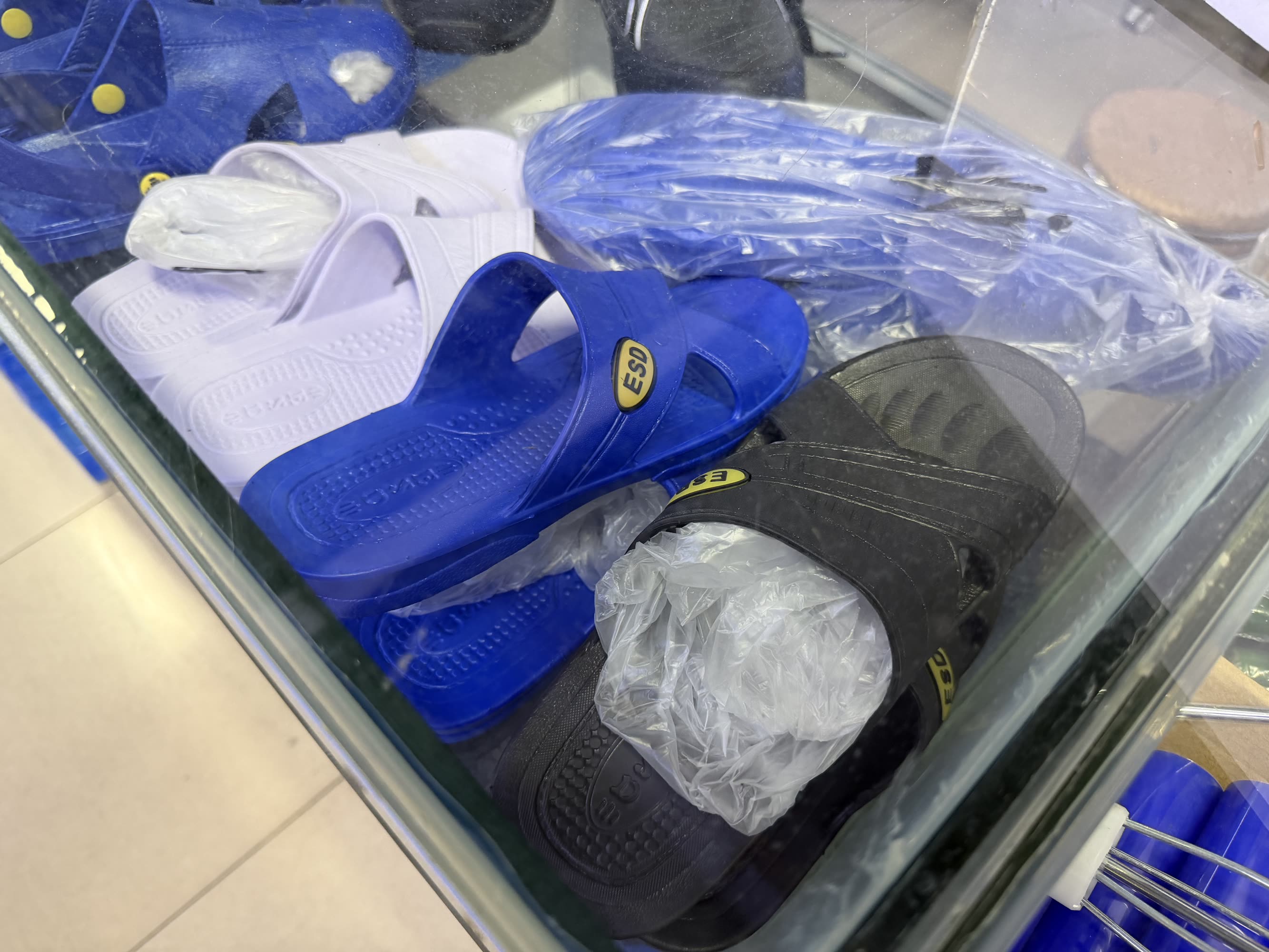 PPE (those are fingertip condoms), stickers, and ESD Flip-Flops.